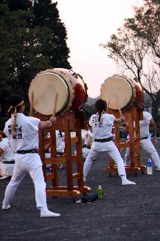 まほろば太鼓も去年につづき2回目の出演だったが、陽が落ちるにつれ、野焼の炎と太鼓の響きがマッチしていい雰囲気を醸し出すことができた。