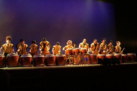 | 秋田県美郷町仙南公民館で大歓迎を受けた11月1日から1日置いた11月3日、秋田県横手市の秋田ふるさと村ドーム劇場で、第15回秋田ふるさと村・第18回秋田県子ども太鼓フェスティバルが開かれた。 我らがk-co師匠が出演する蘭導をはじめ菖蒲太鼓、仙北太鼓、やまばと太鼓、大曲太鼓道場などの錚錚たるメンバーが出演するとあって何がナンでも聴きに行くと決めていた。自分一人では勿体ない、と参加メンバーを募ると、岸くん、徹、晴奈、香織が手を挙げた。見事に?『まほろば太鼓バカ軍団』が再結成された。 当日の天候は予報によれば雪、コネを使ってスタッドレスタイヤに履き替えた車を借用し、いざ秋田路へ、予報どおり雪に見舞われたものの道路は凍結していなく、無事、秋田ふるさと村へ到着した。 「えっ!ホントに来たの?」などと、陰口を叩かれながら、出番前のk-co師匠と観客席で談笑しながら『爆発する秋田の太鼓』をタップリと堪能させていただいた。しかも、フィナーレでは、k-co師匠が取り仕切った舞台に上がって叩くこともできた。 雪道を押して聴きに行った甲斐は充分にあったというものだ!『秋田の爆発太鼓』バンザーイ!『まほろば太鼓バカ軍団』バンザーイ! 出演団体(出演順) 1.大森太鼓 大森中学校部(横手市) 2.河辺太鼓ジュニア(秋田市) 3.羽川剣ばやし筑峰太鼓(秋田市) 4.仙北太鼓ジュニア(大仙市) 5.東今泉八幡太鼓ジュニア(大仙市) 6.能代べらぼう太鼓ジュニアチーム(能代市) 7.刈和野大綱太鼓(大仙市) 8.やまばと太鼓(秋田市) 9.大曲太鼓道場(大仙市) 10.男鹿北中学校なまはげ太鼓クラブ(男鹿市) 11.仙北太鼓(大仙市) 12.大雄太鼓(横手市) 13.能代べらぼう太鼓(能代市) 14.いずみ太鼓の会(秋田市) 15.蘭導(大仙市) 16.御嶽清流太鼓(横手市) 17.櫻林御鷹太鼓(横手市) 18.東今泉八幡太鼓(大仙市) 19.菖蒲太鼓保存会(美郷町) |