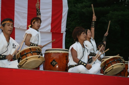 | 今年も「相鉄の那須」夏まつりが開かれた。昨年は、小雨が降り止まず「まほろば太鼓」の演奏は中止となってしまったが、今年、再びお呼びをいただいた。 今年は天候にも恵まれ、那須の夜空に太鼓の響きを轟かせ、昨年のリベンジを果たすことができた。 特筆すべきことが一つある。 例年、抽選会が行われているようだが、今年の抽選会の「抽選券」は(も?)団扇・・・。何と、その図柄は、まほろば太鼓の演奏写真だった。 |