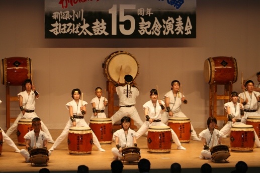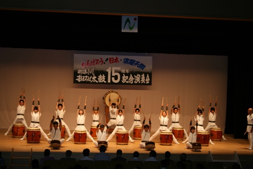 | 那須小川まほろば太鼓創設15周年を記念し、また、東日本大震災の1日も早い復興を願い「がんばろう日本!飛躍天翔」と題したこの演奏会には、町と教育委員会そして秋田県太鼓連盟並びに那須太鼓連盟の後援もいただき、さらに本家というか兄貴分の「秋田県菖蒲太鼓」にも出演いただき盛大に開くことができた。 後援をいただいた町当局、教育委員会、秋田県太鼓連盟及び那須太鼓連盟、あいにくの空模様(台風12号)の中をお越しいただいたご来場の皆様、菖蒲太鼓の皆様、山形県さけがわ太鼓の隊長、そしてお手伝いをいただいたスタッフの皆様、すべての方々に心から感謝を申し上げます。 ありがとうございました。 |