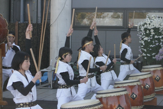 増子保存会長のあいさつです。 横に熱烈なまほろば太鼓ファンが 控えています。 |