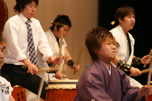 | 3年ぶりに「那珂川町成人式」に出演することができた。まほろば太鼓打ち手「新成人」3人(沼田繁一、川上智彰、飯塚尋史)も自ら出演し、晴れの門出を飾ることができた。 成人式会場では、未来を託す新成人たちと共に熱いあついパフォーマンスを繰り広げることができた。 |