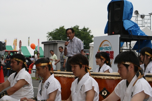| 〔あいさつ〕 2日目は増子保存会長も参加しあいさつしました。 |