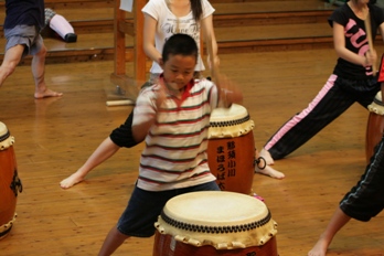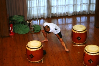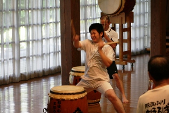 | 恒例となった「まほろば太鼓夏合宿」が8月25日〜26日の2日間、那珂川町ふるさと館及び青少年旅行村(グリーンヒル)を会場に開かれた。参加者は、まほろば太鼓メンバーと山形県清流さけがわ太鼓の隊長(すなっち山岳会隊長)+奥さんのジジ子さん+ご子息のHYOUくん。 平成17年の秋田県講習会「打ち込み専門講座」の成果発表曲「練習曲1」(長さん作曲)改め「乱舞」のアドリブ回しの習得をメインに、テンポ150での強歩、ランニング、ストレッチ、基本打ちもみっちり盛り込み「太鼓バカ軍団」が一堂に会して充実した2日間を過ごすことができた。 なお、今回の写真はかなりのピンボケ以外はすべて掲載しましたが、コメントは付けてありませんので悪しからず・・・。 |