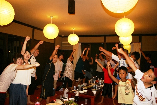 | 恒例となった「まほろば太鼓夏合宿」が8月24日〜25日の2日間、那珂川町ふるさと館(宿泊はまほろばロッジ)を会場に開かれた。参加者は、まほろば太鼓メンバーと山形県清流さけがわ太鼓の隊長(すなっち山岳会隊長)+奥さんのジジ子さん+ご子息のHYOUくん。 合宿は、原則的に、ランニング→ストレッチ→強歩→ストレッチ→打ち込み→曲練習の順で何クールか行った。 練習曲は平成17年の秋田県講習会「打ち込み専門講座」の成果発表曲「練習曲1」(長さん作曲)改め「乱舞」で、全員でアドリブ回しする楽しい曲だ。 おかげ様で今年も「太鼓バカ軍団」が一堂に会して楽しく充実した2日間を過ごすことができた。 そんな様子を堂々76枚アップしますので、どうぞお楽しみください。 |