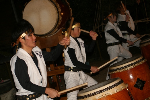 その後ろに尺5を四つと大太鼓一つを並べました。 |