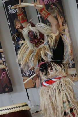 「男鹿っ鼓」はいつ見てもカッコイイー! 洒落た幟旗もつくったようです。 |