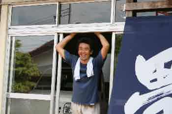 沿道の応援者(その3) そのおばちゃんのお孫さんで 玉屋畳店の跡取り息子さんです。 |